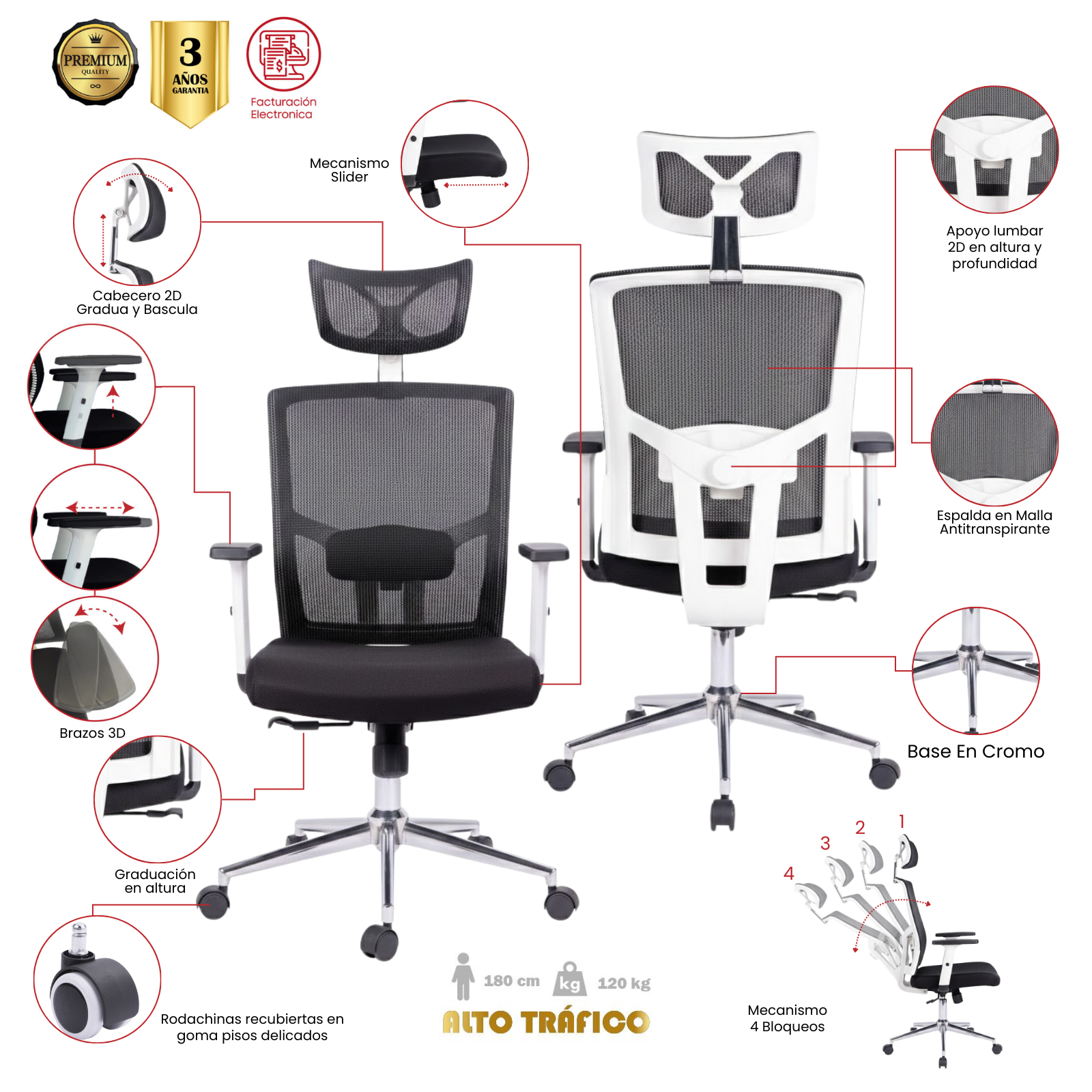 • Respaldo en malla antitranspirante color Negro
