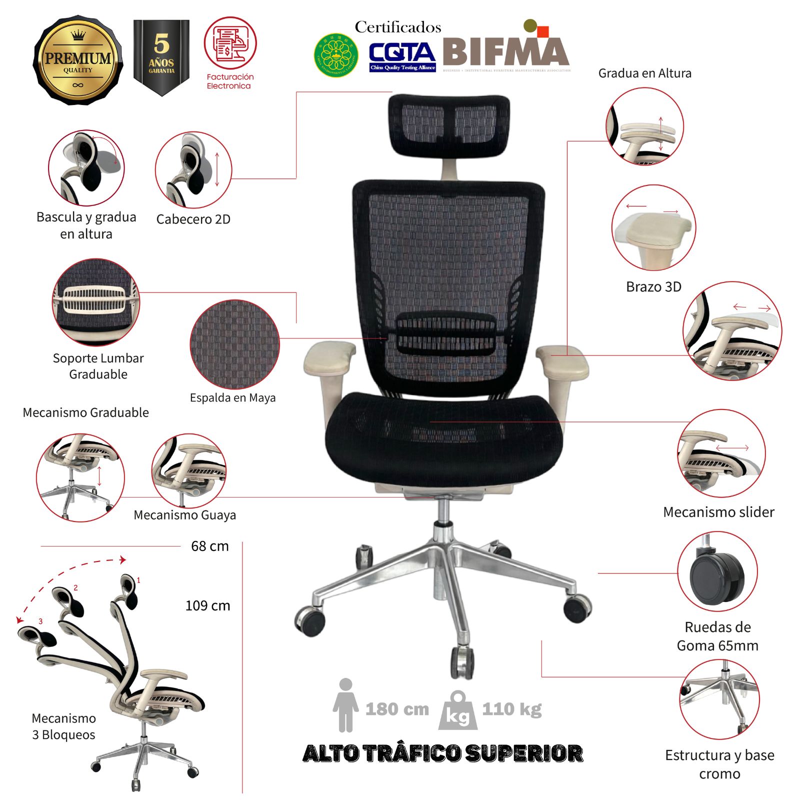 • Base en cromo de alto tráfico